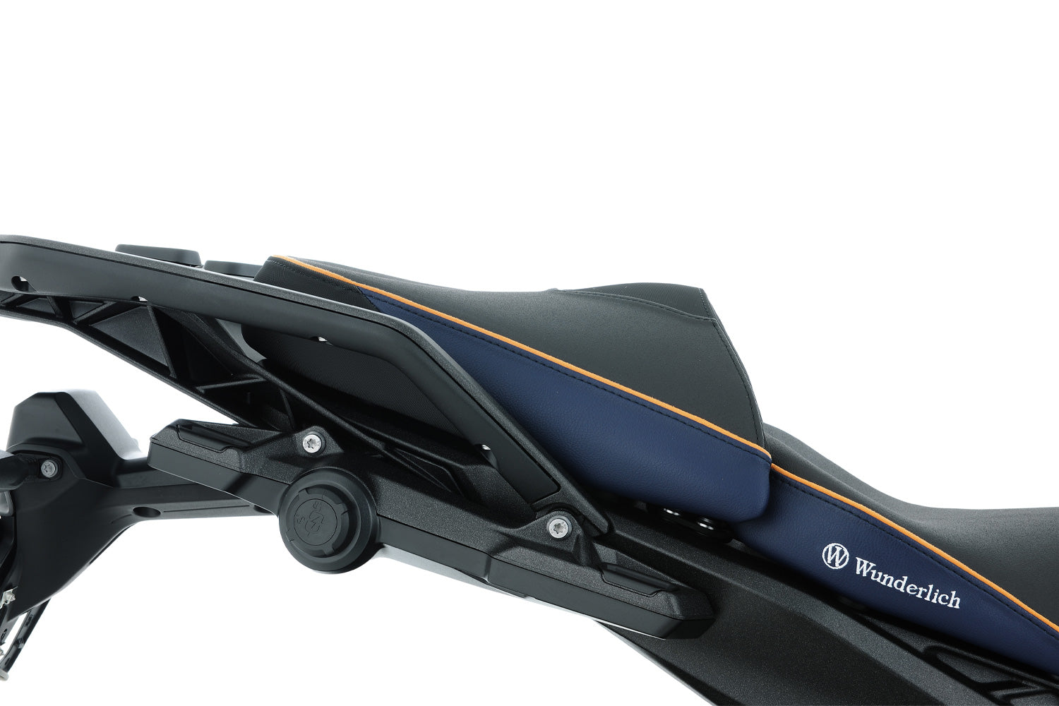 The new comfort extra: Queens-Edition!Our unique passenger seat on the market offers a high level of ergonomics, cushioning, and—most importantly—size, on par with modern, high-quality rider seats. The shape of the cover, the intricate seam design, and the handcrafted finish by our upholsterers create a look that blends seamlessly with the BMW R 1300 GS, despite its generous 70 mm width increase compared to the stock seat. At the same time, the significantly larger seating surface reduces pressure, providing noticeably greater comfort.
