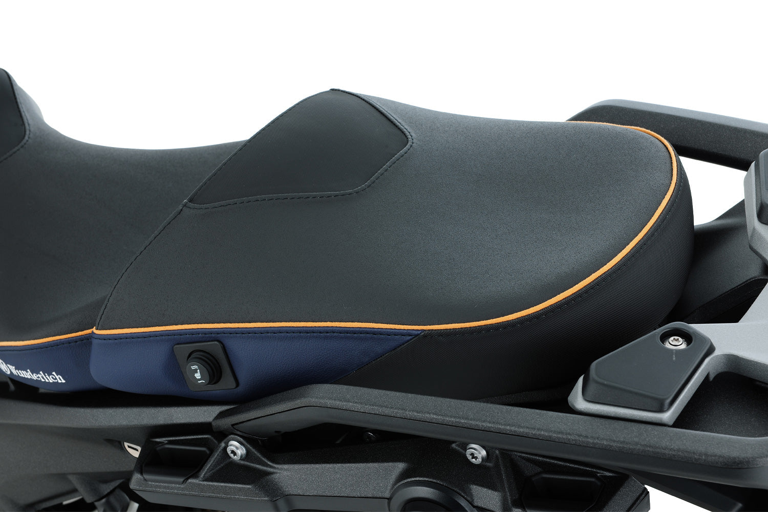 AKTIVKOMFORT seat with adjustable Smart Plug & Play heatingSmart Plug & Play: This comfort-heated seat replaces the original seat. A prerequisite is that the original seat is also equipped with heating and that the motorcycle has the corresponding power supply.Before inserting the seat as usual, the electrical connection to the motorcycle’s onboard system must be made. This is done using the pre-configured Plug & Play cable! The desired heating level (Off, Heating Level 1, Heating Level 2) can be adjusted as usual using a conveniently positioned switch on the right-hand side of the seat in the direction of travel, while the rider is notified in the onboard menu when the pillion seat heating element is activated.