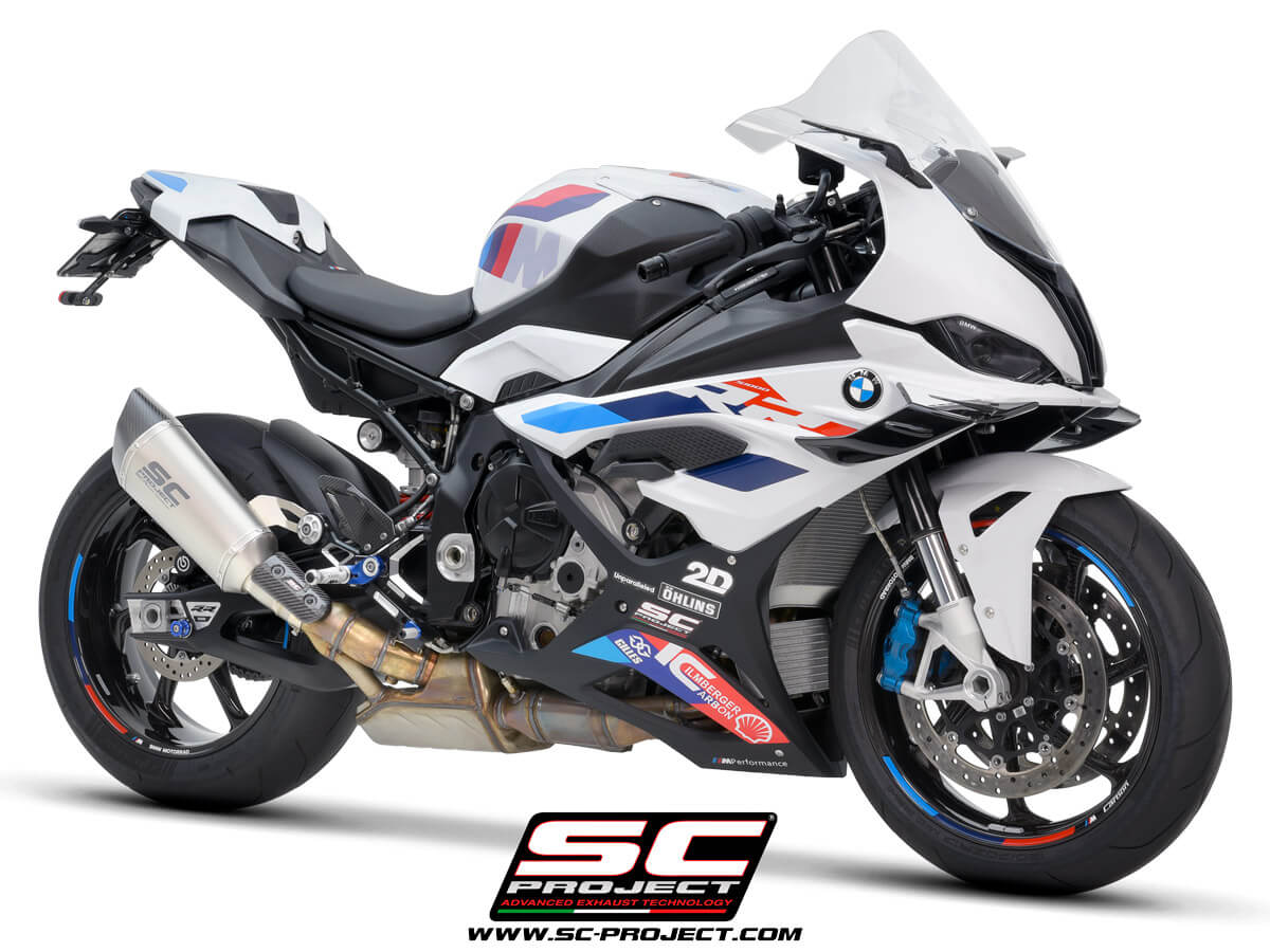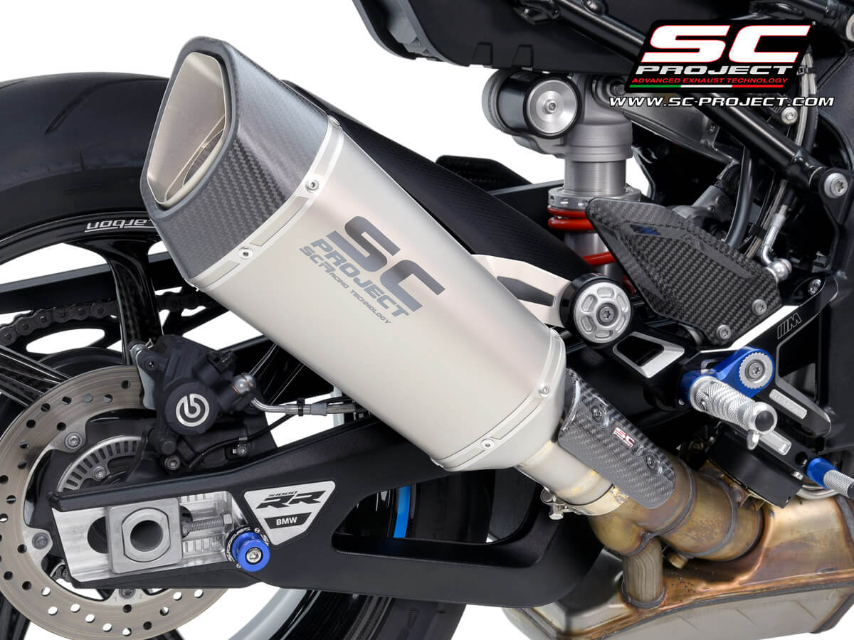 A look with taut and decided lines will enrich Your BMW S 1000 RR making it unique and exclusive. The exit pipe obtained by hydroforming and the carbon fiber end cap from the rhomboidal asymmetric shape make inimitable the silencer SC1-R. The lightweight outer body is available in both Titanium and Carbon version. The weldings with T.I.G., the sound-absorbing material resistant to very high temperatures and the insert bushings made in CNC machining embellish the SC1-R silencer. In the version with Titanium body the R&D department of SC-Project wanted to make the SC1-R more elegant by imprinting the Logo by laser, without distorting the look, while in the Carbon version, on the silencer is riveted an insert with the SC-Project logo as in the versions of our mufflers used in Competitions. The entire system can be further improved with the addition of a carbon fiber protection made in the autoclave included in the kit.