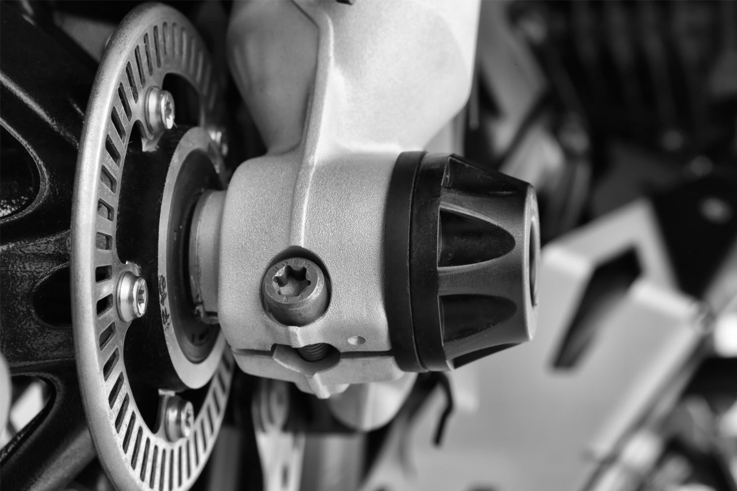Ideal combination of crash bar/ -pads, because the bike is now also protected by the axis pads. li>