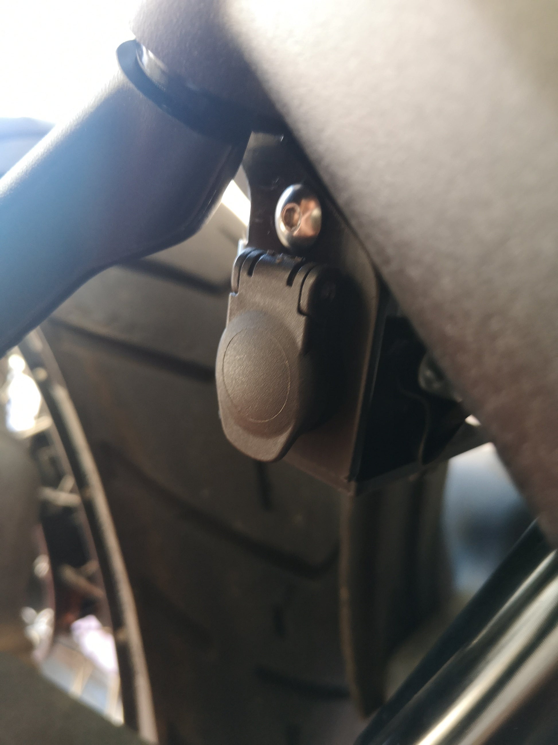 The factory supplied power connection below seat is used to power this relocated DIN socket. A custom designed mounting bracket is supplied with the kit to mount the socket.