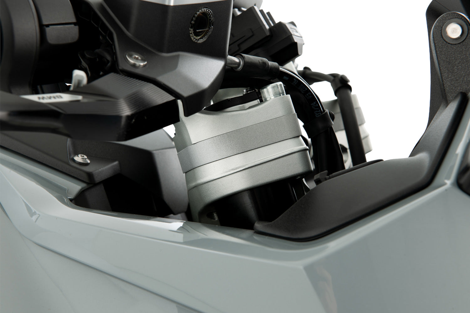 - One high-quality aluminium spacer element each for the right and left clip-on handlebars for models with original BMW navigation system