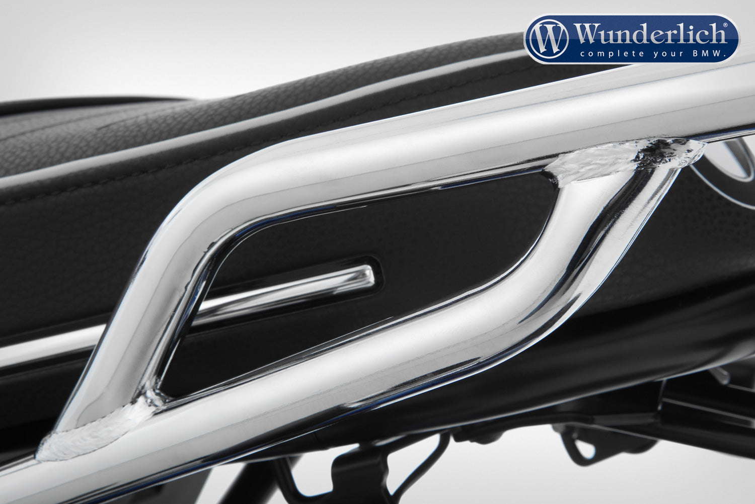 The main focus when designing this discreet, sporty-looking luggage bridge was on authenticity and therefore also on the use of the right materials, the chosen pipe diameter as well as the craftsmanship of the pipe and surface finish. We decided to go with the best precision steel pipe, which is precision welded and high-quality chrome-plated. This means we've fulfilled the wishes of many R nineT riders who want a luggage rack like this for their sportily converted R nineT. The luggage bridge is formed in a contemporary style, making it perfect for the R nineT. It is particularly suited for the transport of soft luggage.
