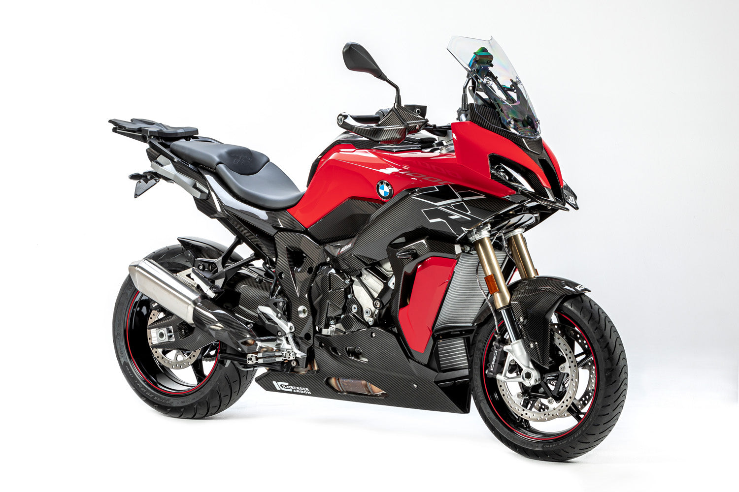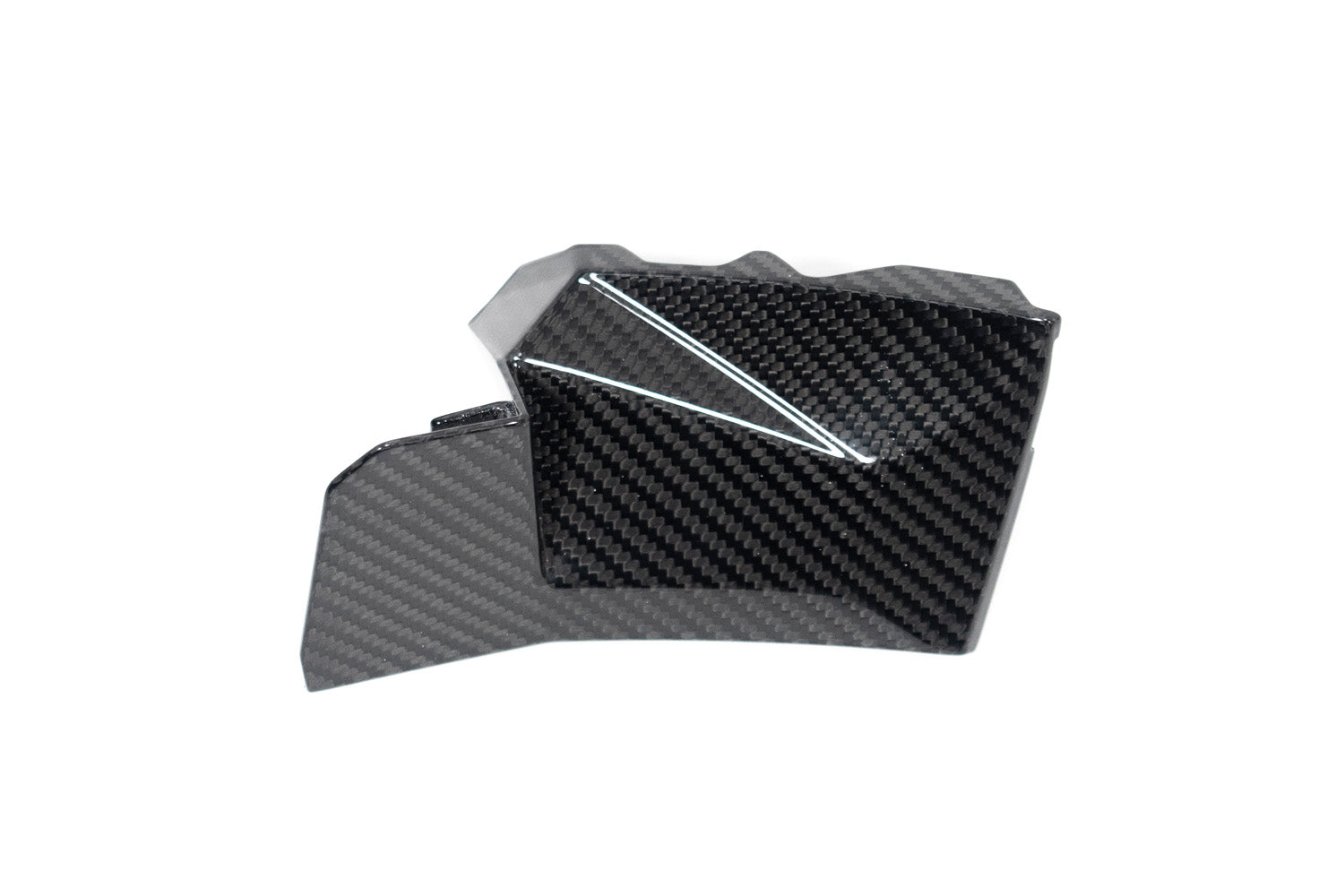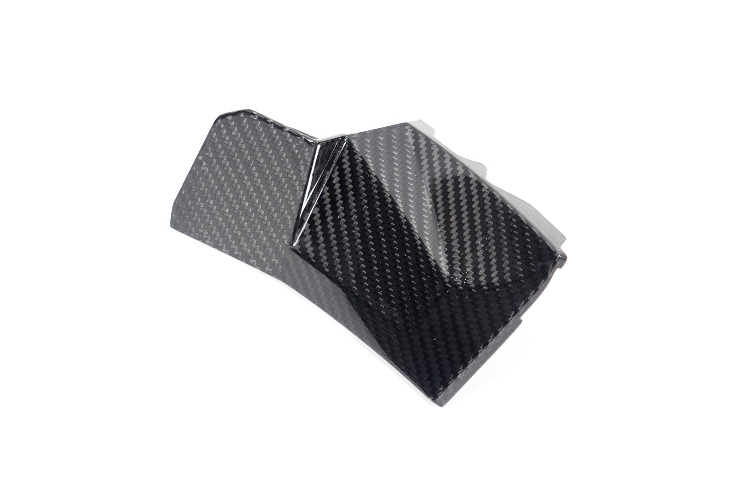 This space age material unfolds its full potential with up to 70% weight decrease compared to the standard part and its weight-specific stiffness. Form follows function here and integrates optimally into the design of the motorcycle. The contours of the machine are incorporated as well as the material and surface texture of neighbouring series components. This carbon component underscores the high-tech claim of your BMW with the unique appeal of real carbon.