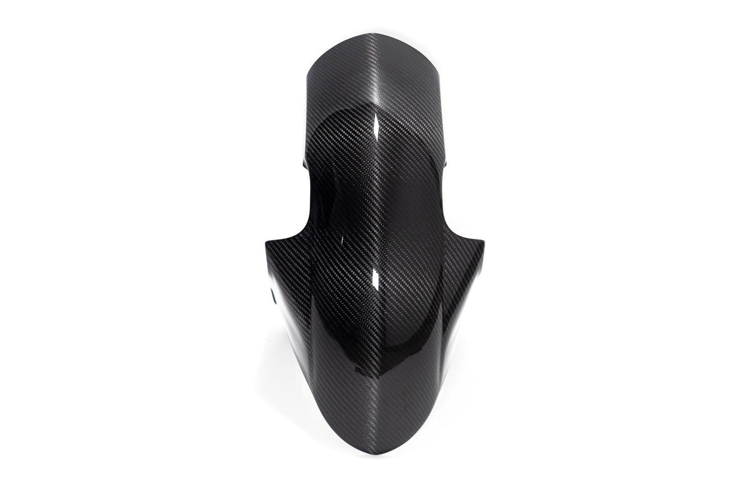 The carbon mudguard replaces the original component while retaining the original attachment points.
