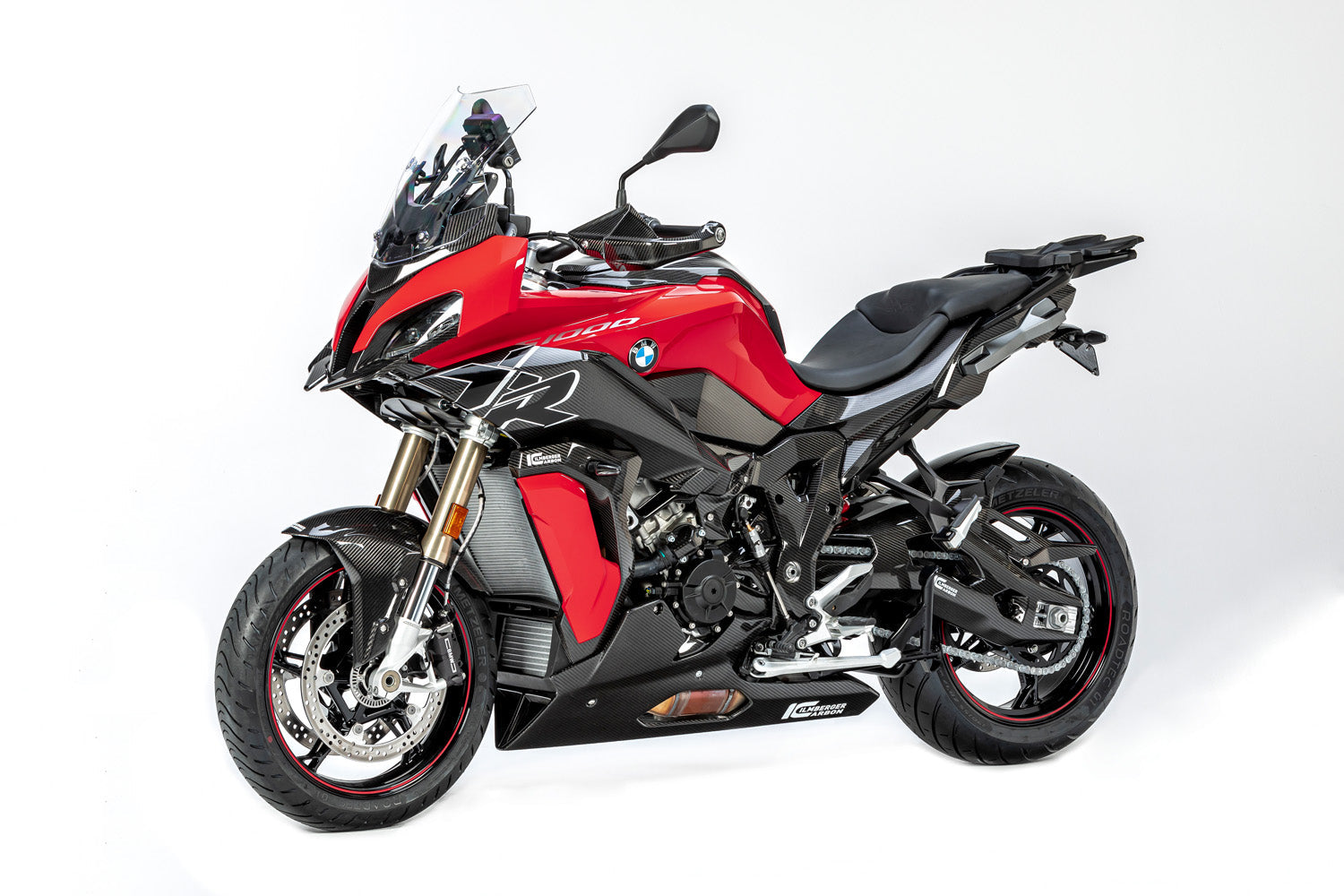 This space age material unfolds its full potential with up to 70% weight decrease compared to the standard part and its weight-specific stiffness. Form follows function here and integrates optimally into the design of the motorcycle. The contours of the machine are incorporated as well as the material and surface texture of neighbouring series components. This carbon component underscores the high-tech claim of your BMW with the unique appeal of real carbon.