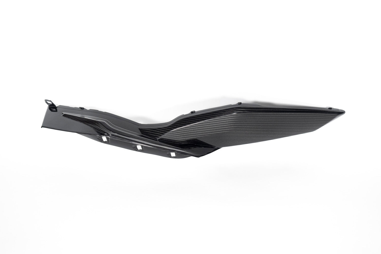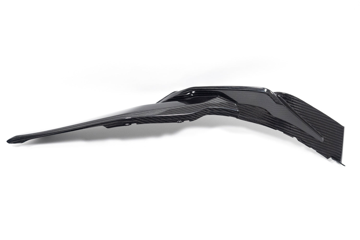 This space age material unfolds its full potential with up to 70% weight decrease compared to the standard part and its weight-specific stiffness. Form follows function here and integrates optimally into the design of the motorcycle. The contours of the machine are incorporated as well as the material and surface texture of neighbouring series components. This carbon component underscores the high-tech claim of your BMW with the unique appeal of real carbon.