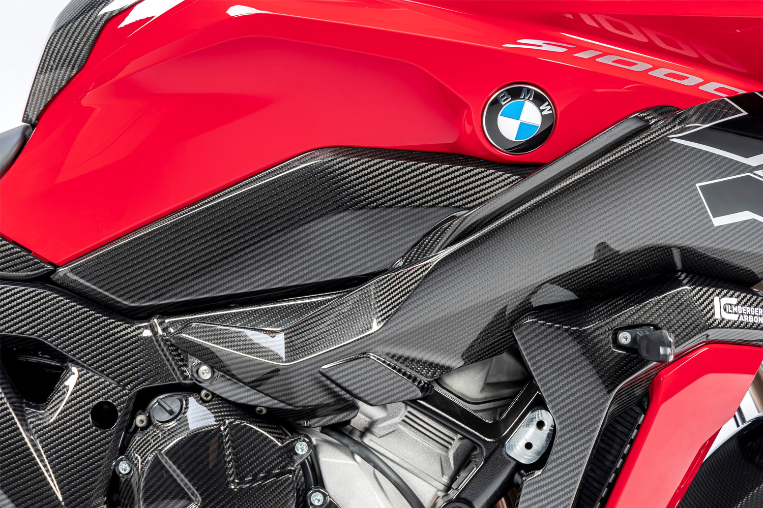 This space age material unfolds its full potential with up to 70% weight decrease compared to the standard part and its weight-specific stiffness. Form follows function here and integrates optimally into the design of the motorcycle. The contours of the machine are incorporated as well as the material and surface texture of neighbouring series components. This carbon component underscores the high-tech claim of your BMW with the unique appeal of real carbon.