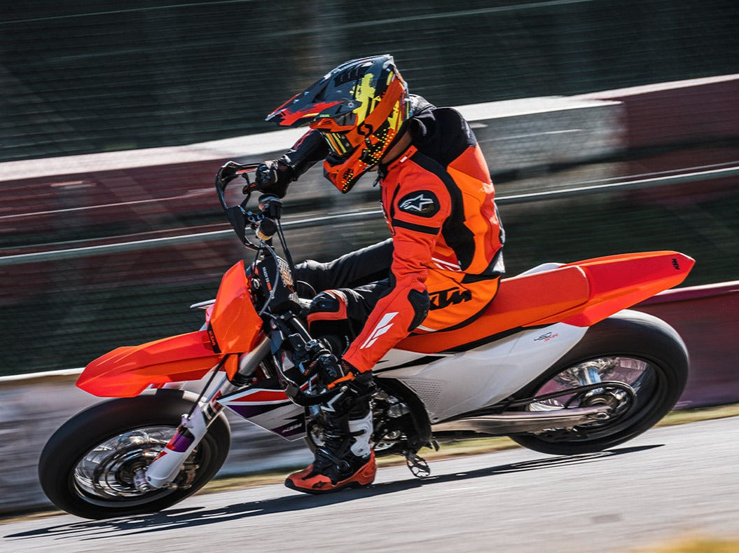 You'd be forgiven for thinking the KTM 450 SMR couldn't possibly get any better. But we'll let that slide - just as you'll be doing when you throw a leg over this latest iteration of pure Supermoto perfection. With a frame that is specifically engineered for longitudinal rigidity, stability, and exceptional rider feedback and an engine that blows away the competition with unrelenting power delivery - not to mention the electronic wizardry to rival sports bikes - The KTM 450 SMR is a purpose-built racer with one simple goal - winning championships.