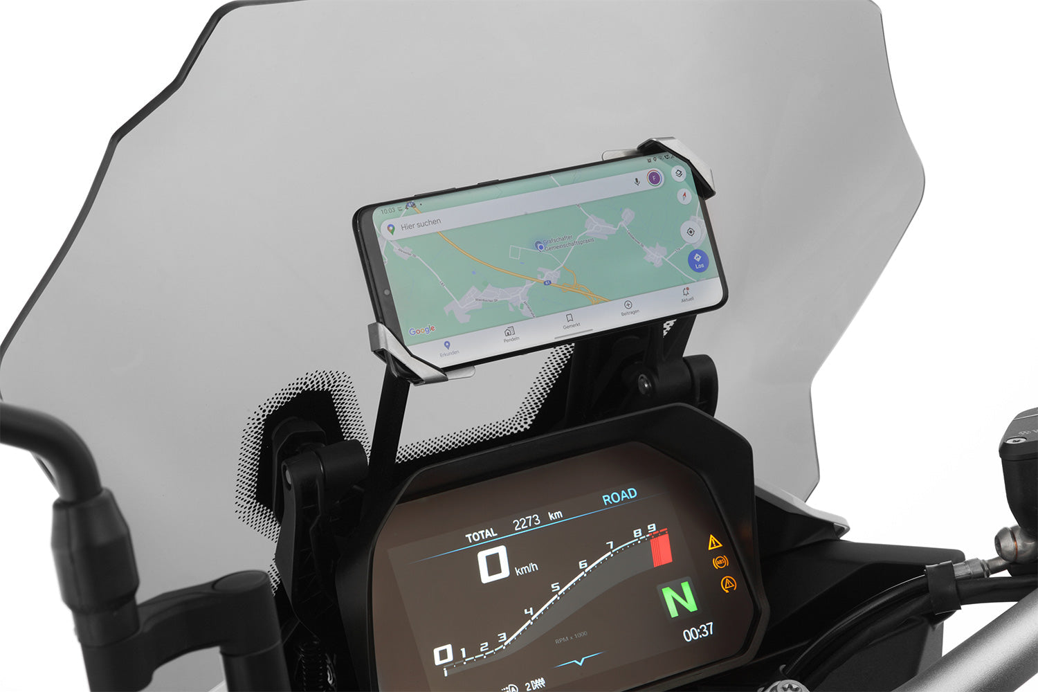 This is the clever solution when it comes to mounting the smartphone and ActionCam ergonomically and for mounting the smartphone in the natural line of sight, for example when it is to be used as a navigation system. This ensures the rider always has their eyes on the road and an eye on the smartphone or ActionCam at the same time.