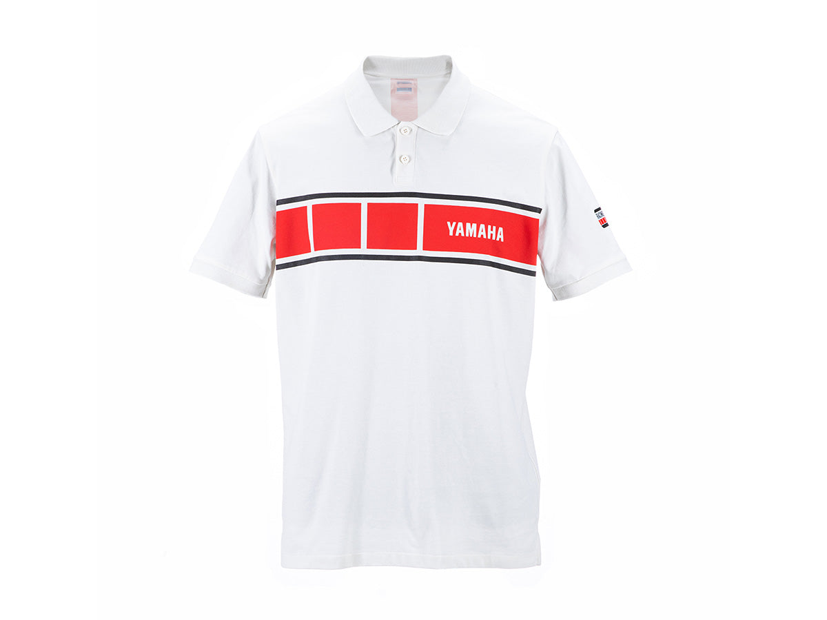 A smart and elegantly designed garment, the Racing Heritage polo shirt for men with button closure gives you that classic racing look. The organic cotton and elastane blend ensures mobility and comfort, while the off-white body contrasts nicely with the iconic red speed block graphic on the chest and the red colour block on the upper back. The racing heritage look is completed with the white Yamaha logo inside the speed block graphic on the chest and black Yamaha logo on the back.