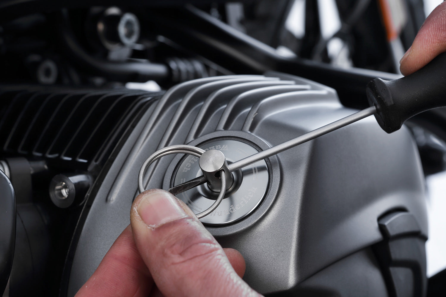 The small size of the key means it can be added to the bikes key ring, and does not require accessing the tool box whenever topping up the oil.