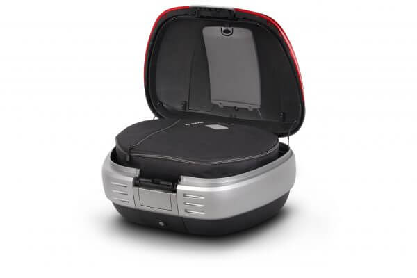 The SH50 is a robust and elegant motorcycle top case, ideal for those who love long trips. The top case has capacity to hold up to 2 full-face helmets (50L) without having to lay them on the side, plus travel accessories.