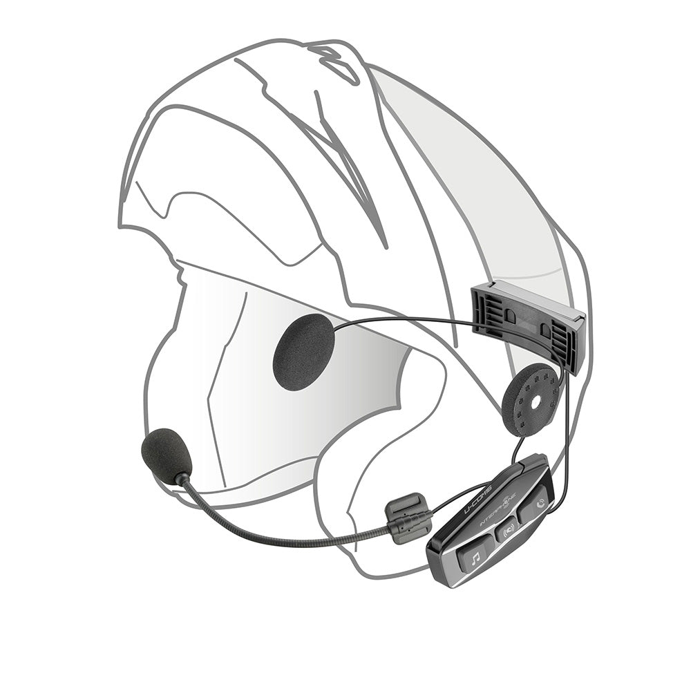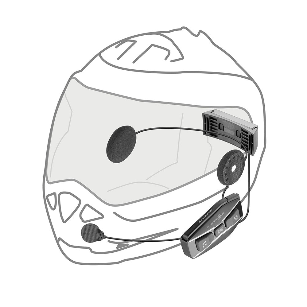 • AUDIO: Device management with multilingual voice control – Pre-recorded voice messages Windproof directional microphone – Automatic volume adjustment (can be deactivated) on 3 levels – New 40 mm HD top sound speakers – Audio equalizer – Vox intercom adjustable on 5 levels – HD intercom
