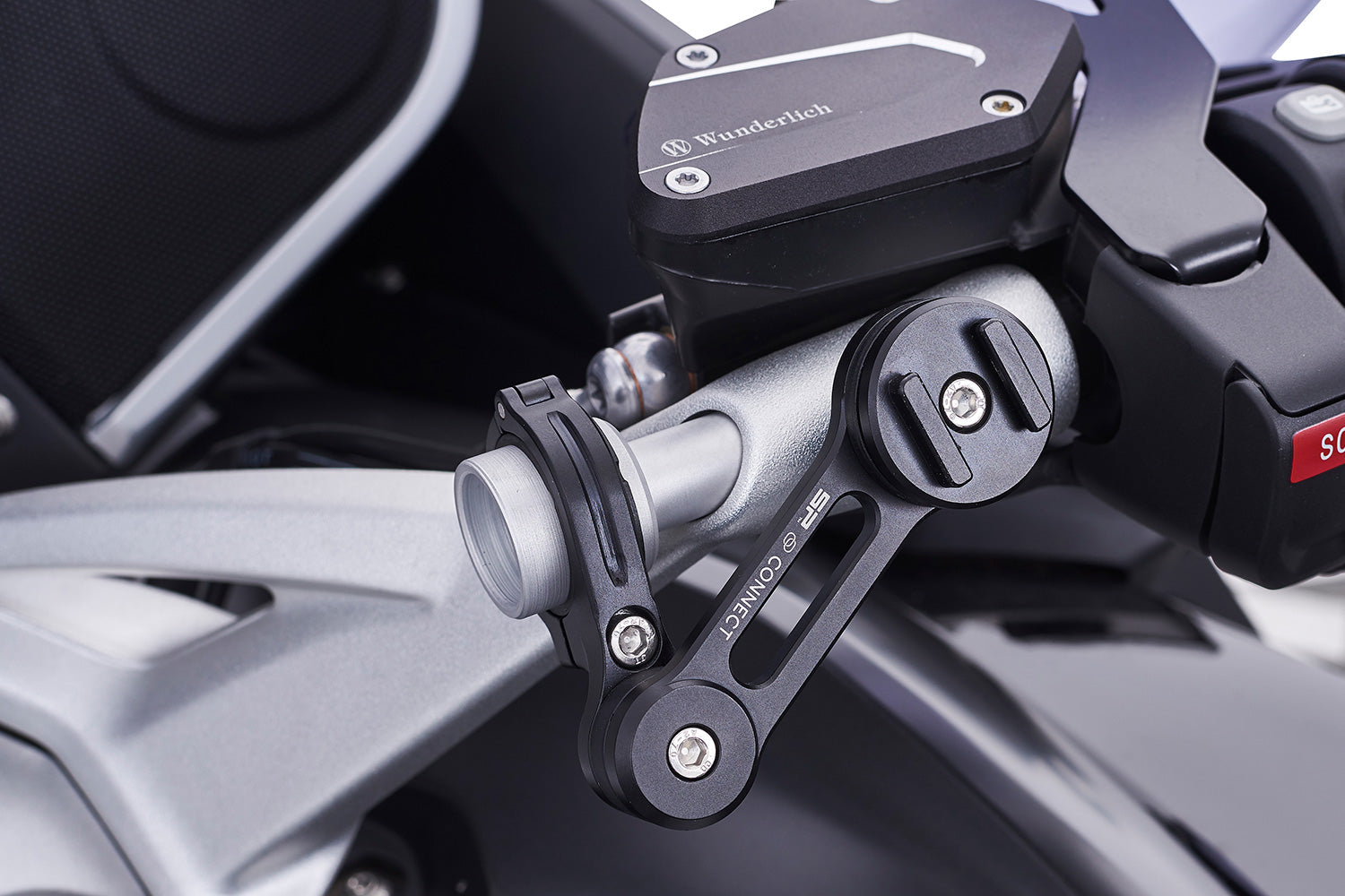 This adapter lengthens the handlebar mount to the middle of the fork brace, whereby this extension can be attached to a normal SP-Connect system round pipe bracket. This positions the smartphone securely in the field of vision for use in navigation, etc.