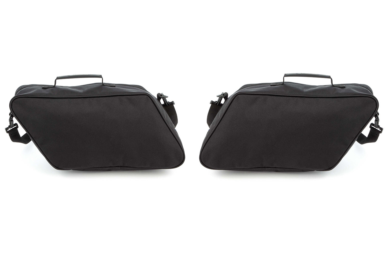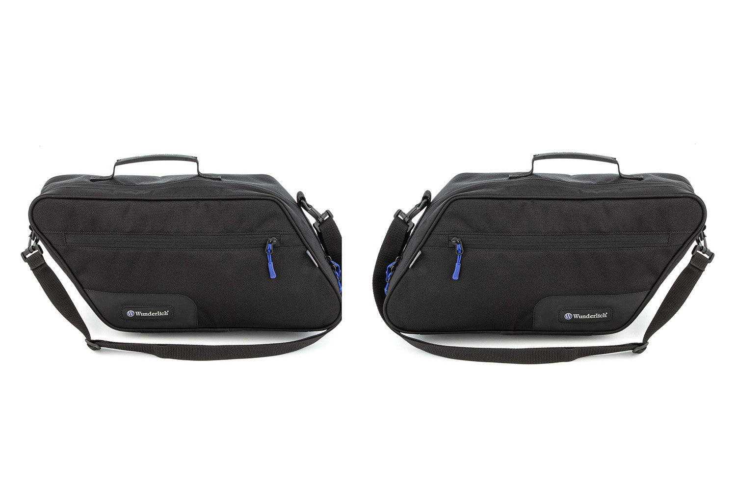 Our tailor-made, robust black CORDURA® inner pockets for cases are perfectly crafted and leave nothing to be desired: Equipped with a blue inner lining, adjustable carrying strap and ergonomic, practical carrying handle, these bags are elegantly pre-assembled and can also be used as handy travel bags. Comes with a generous inner pocket that can be closed with a zipper. Exclusive case inner pocket for original BMW cases as well as cases with similar geometry.