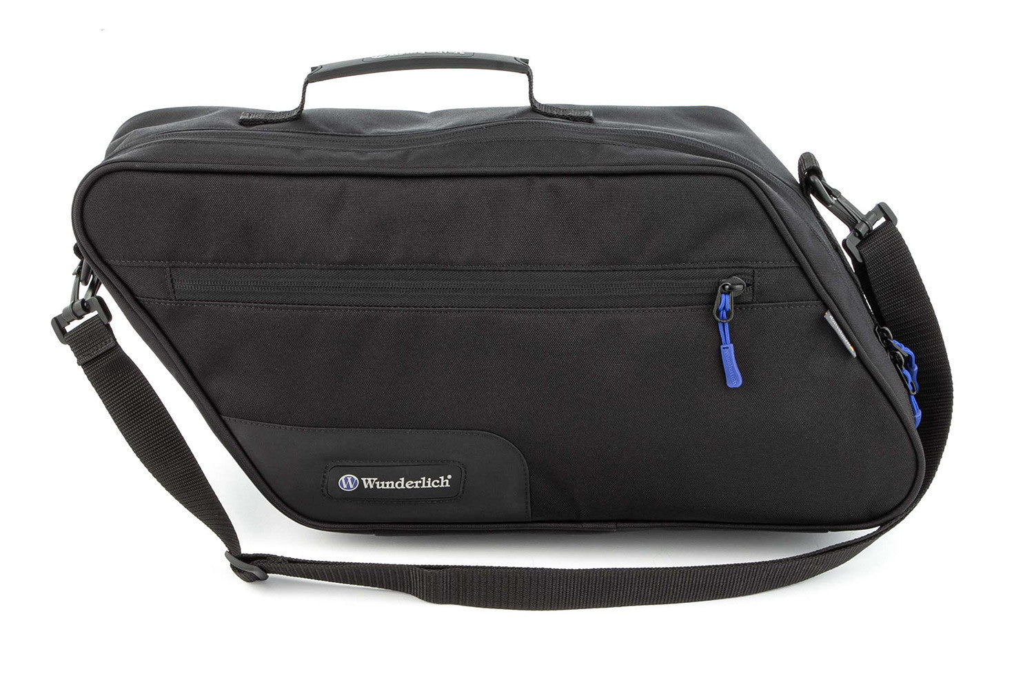 Our tailor-made, robust black CORDURA® inner pockets for cases are perfectly crafted and leave nothing to be desired: Equipped with a blue inner lining, adjustable carrying strap and ergonomic, practical carrying handle, these bags are elegantly pre-assembled and can also be used as handy travel bags. Comes with a generous inner pocket that can be closed with a zipper. Exclusive case inner pocket for original BMW cases as well as cases with similar geometry.