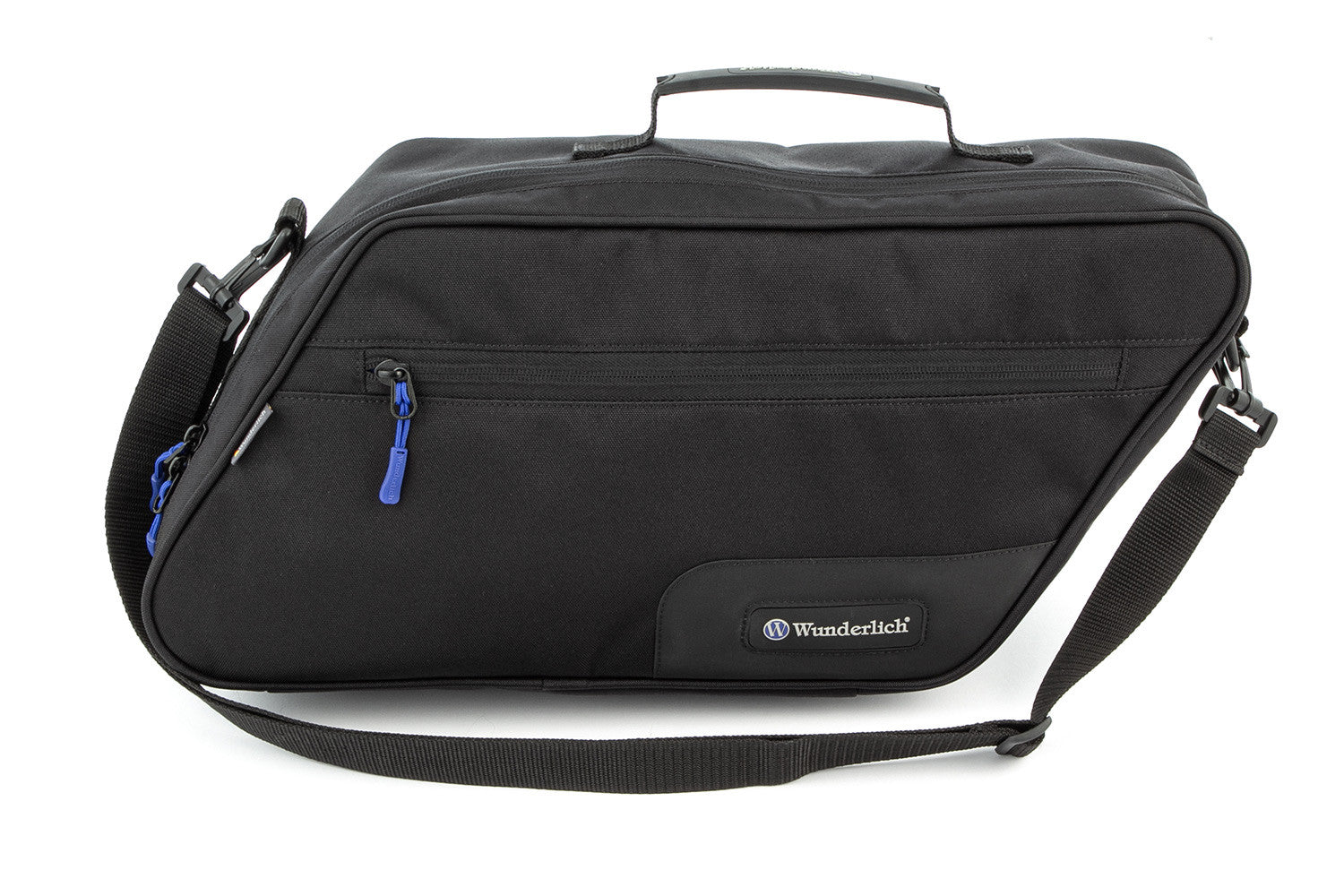 Our tailor-made, robust black CORDURA® inner pockets for cases are perfectly crafted and leave nothing to be desired: Equipped with a blue inner lining, adjustable carrying strap and ergonomic, practical carrying handle, these bags are elegantly pre-assembled and can also be used as handy travel bags. Comes with a generous inner pocket that can be closed with a zipper. Exclusive case inner pocket for original BMW cases as well as cases with similar geometry.