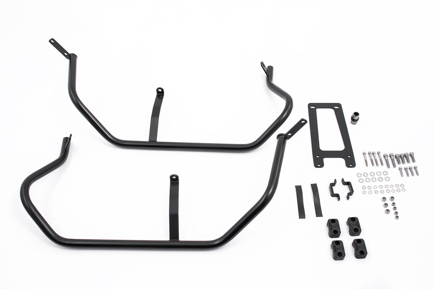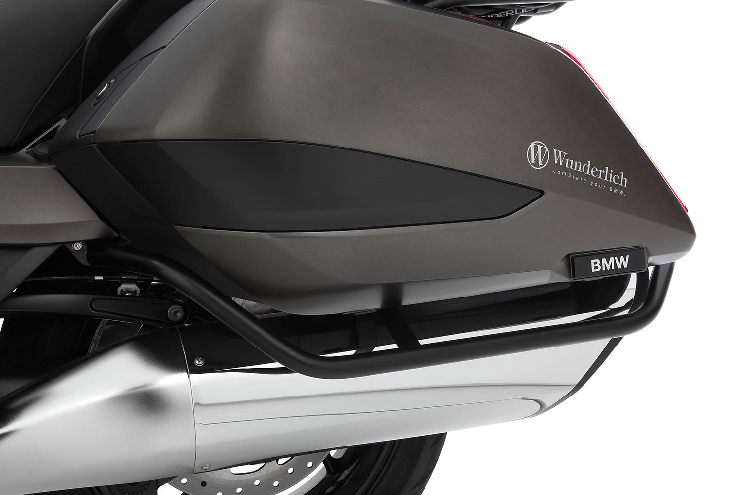 These case protection bars incorporate the unique design of the K 1600 B and are guided underneath the cases. They integrates perfectly on a visual level and extend the secure protection of the heavy K 1600 B/Grand America to the rear of the vehicle. The prominent cases get damaged very quickly in the event of a skid, but these bars reliably protect against expensive repairs.