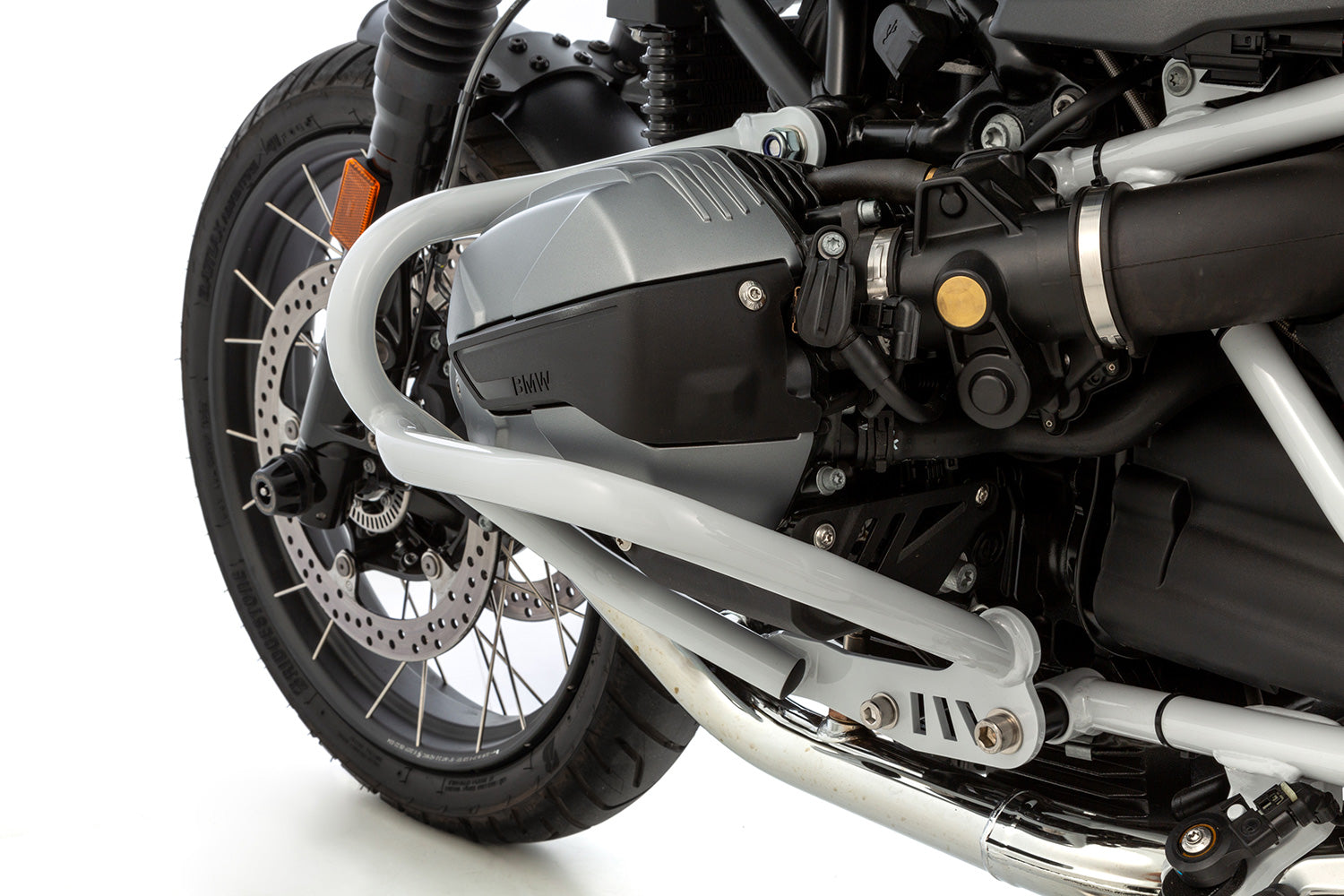 A crash bar made of german precision steel tube, with an impact resistant and strong hybrid plastic coating.