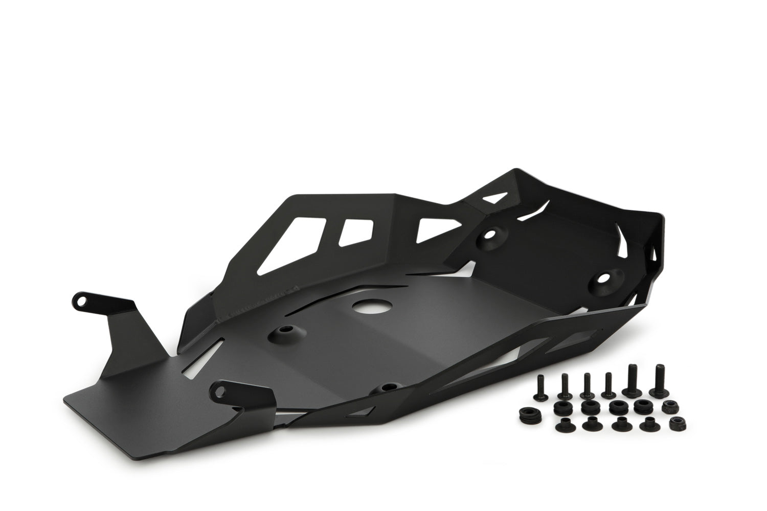 The angled impact plates deflect stones or foreign objects thrown up by the front wheel, significantly reducing the risk of damage to the manifolds and engine. Another advantage: it deflects splash water downwards, especially when the engine is hot, considerably reducing thermal stress on the engine housing, manifolds and seals.