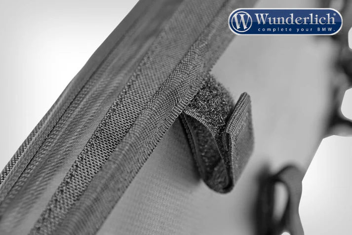The two practical bags for the laterally open rear frame of the R 1200 GS offer space e.g. for tools and close the unsightly holes in the rear frame. Now the GS looks like it has been cast in a mould.