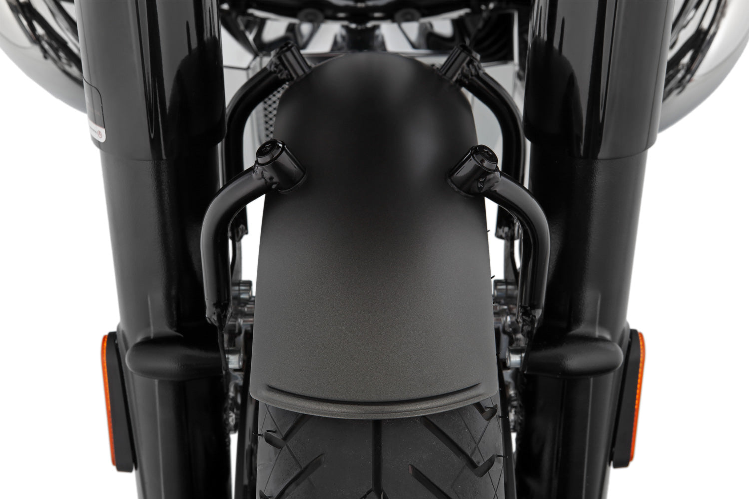 The characteristic holder for the front mudguard is constructed of sturdy, high-quality, powder-coated in three layers black-glossy tubular steel with a diameter of 16 mm. It is securely bolted together with the fender to the four standard attachment points.