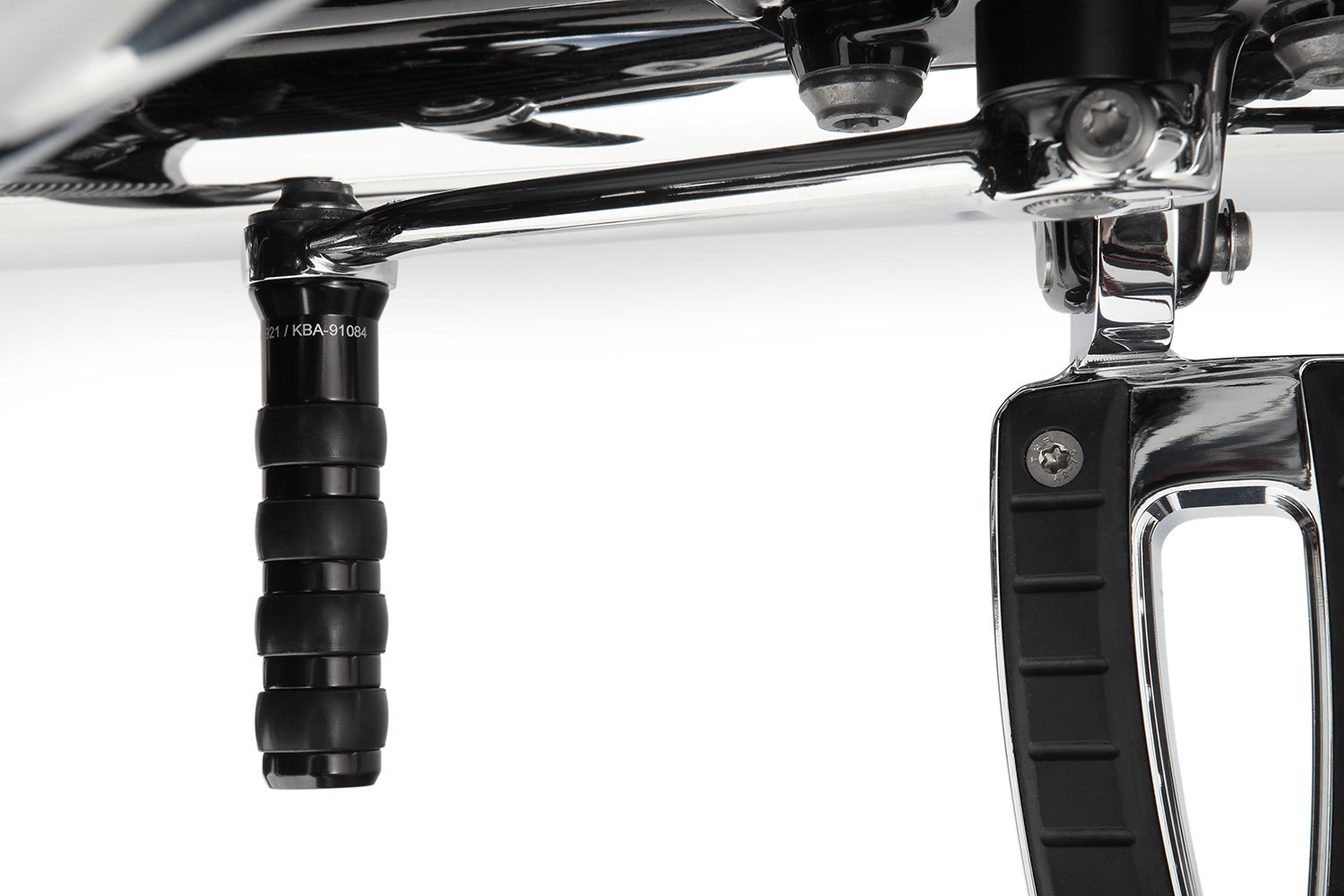 We manufacture the gear-shifter extension from high-quality aluminium. Chromed to match the R 18. The integrated rubber elements provide the best grip when shifting gears and simultaneously ease the stress on your motorcycle boots or shoes.