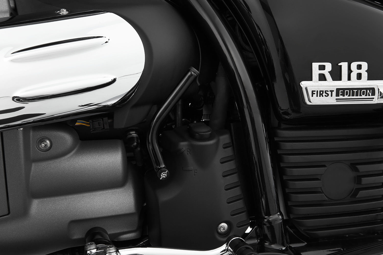 Our gear-shifter replaces the original component and makes engaging reverse gear noticeably easier. The gearshift shaft of our lever protrudes significantly further out of the side of the vehicle for this purpose. The control lever itself is placed in an easily accessible, comfortable position and is perfectly shaped and arranged in terms of grip ergonomics. All this increases operating safety and safety when manoeuvring the R 18. Thanks to its harmonious design, the gear-shifter integrates discreetly into the vehicle design. It comes with a discreet Wunderlich logo. It is made of high-strength tubular steel, which is powder-coated in three layers black-glossy.