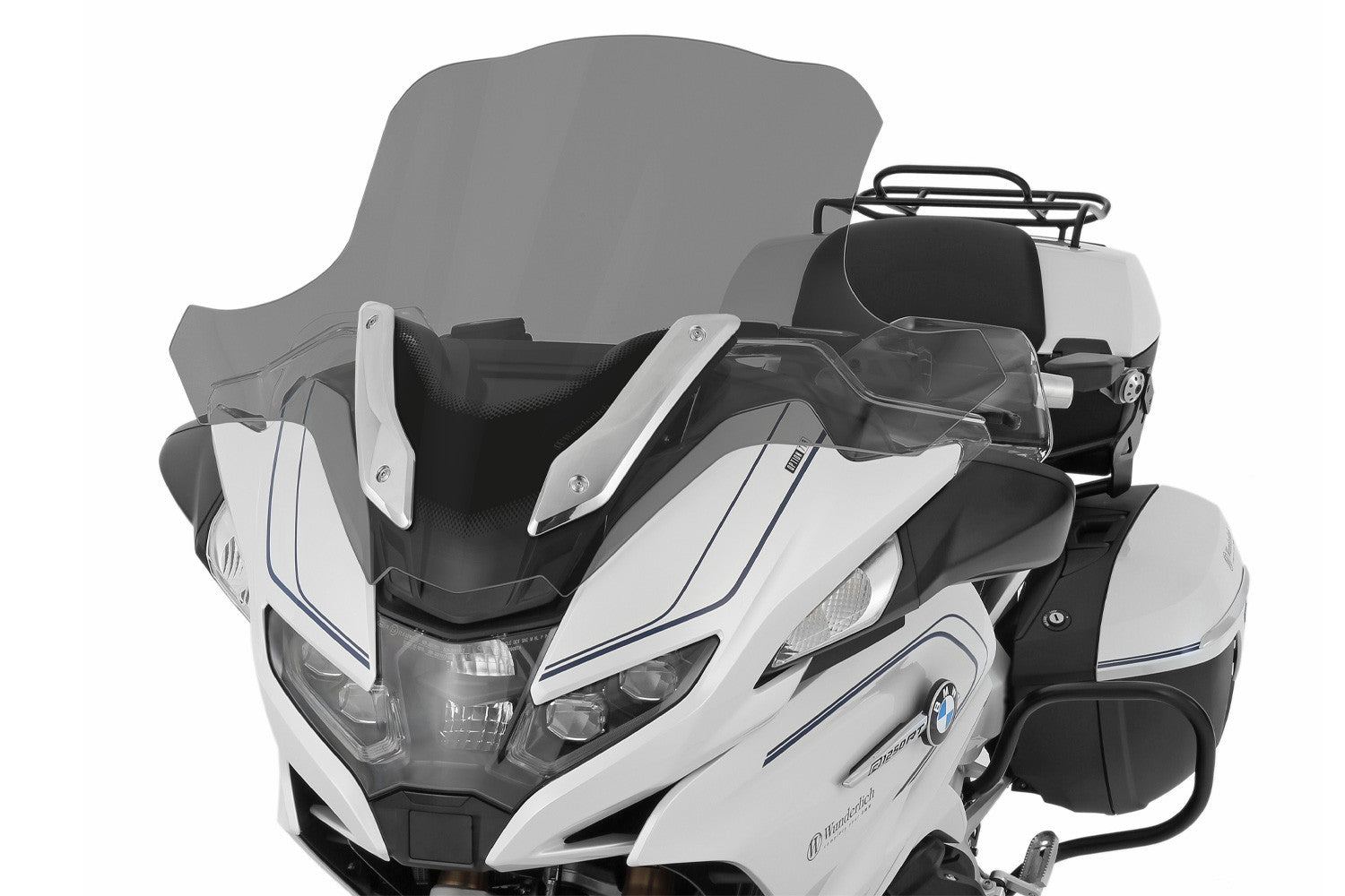 The high-quality workmanship can be seen on the first glance through the scratch-proof, fuel and UV-proof, 5 mm thick windshield: clear transparency with no irritating visual distortions. Another trademark: The hand-polished, all-round edge of this windshield makes separate edge protection redundant. Only in this way can the windshield offer aerodynamic benefits and reduced wind noises, as well as an undisturbed view to the front. All of this enables laidback, thoroughly relaxed and upright sitting. A transparent windshield that emphasises the character of your BMW with its integrated form.