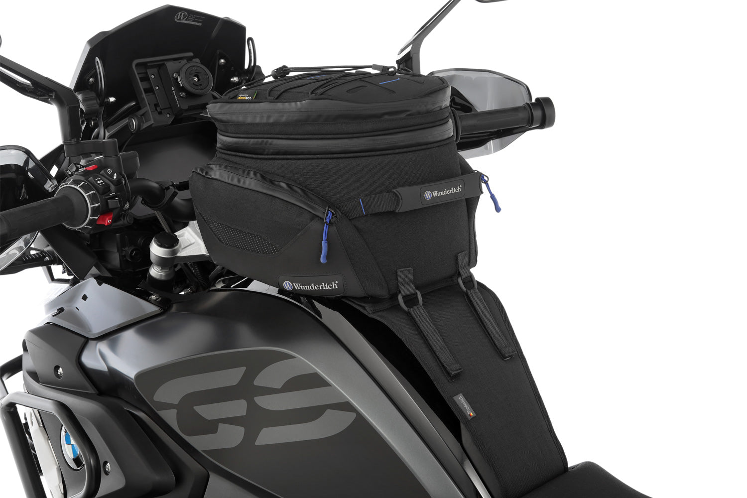 The mounting system is attached to the vehicle with minimal hand pressure and the tank bag can be quickly fastened to it. Push the holding tongue of the tank bag through the holder and close it from the front. An easy and (and therefore brilliant) quick-release system lets you attach and remove the tank bag while wearing gloves or with wet fingers.