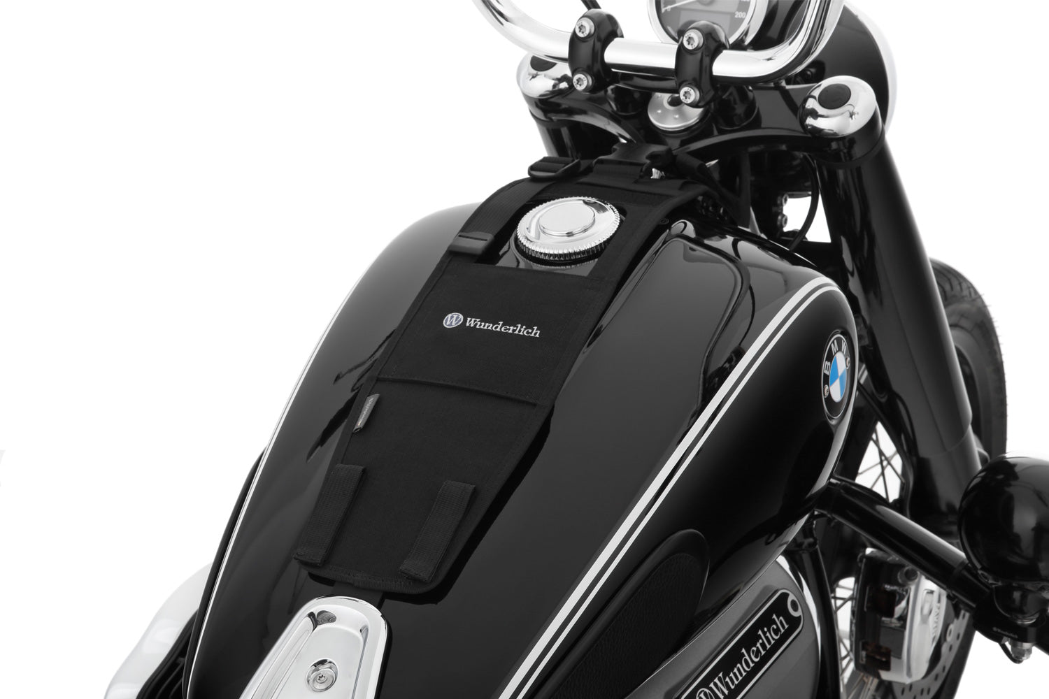 The mounting system is attached to the vehicle with minimal hand pressure and the tank bag can be quickly fastened to it. Push the holding tongue of the tank bag through the holder and close it from the front. An easy and (and therefore brilliant) quick-release system lets you attach and remove the tank bag while wearing gloves or with wet fingers.