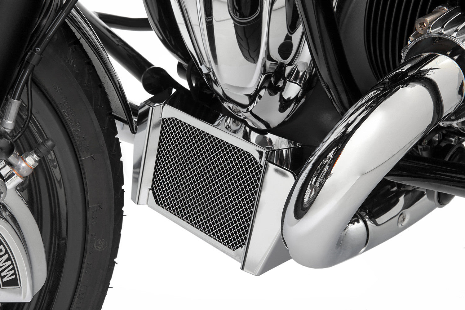 The standard plastic lining of the oil cooler of the BMW R18 appears to many to look out of place in an otherwise extremely coherent concept.