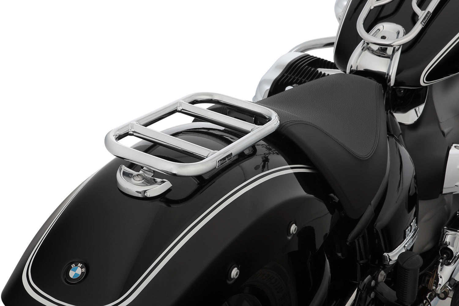 This luggage carrier is the easily accessible and flexible, useful solution for all BMW R 18 riders who want to store bags or other travel luggage in a cruising-friendly and safe way while on the road alone. Its full potential is revealed in combination with our side and saddle bags - or those from BMW - and it stores additional luggage.