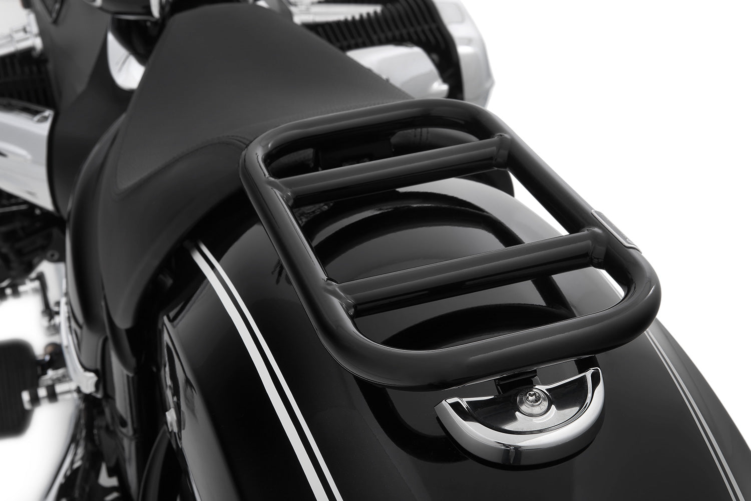 This luggage carrier is the easily accessible and flexible, useful solution for all BMW R 18 riders who want to store bags or other travel luggage in a cruising-friendly and safe way while on the road alone. Its full potential is revealed in combination with our side and saddle bags - or those from BMW - and it stores additional luggage.