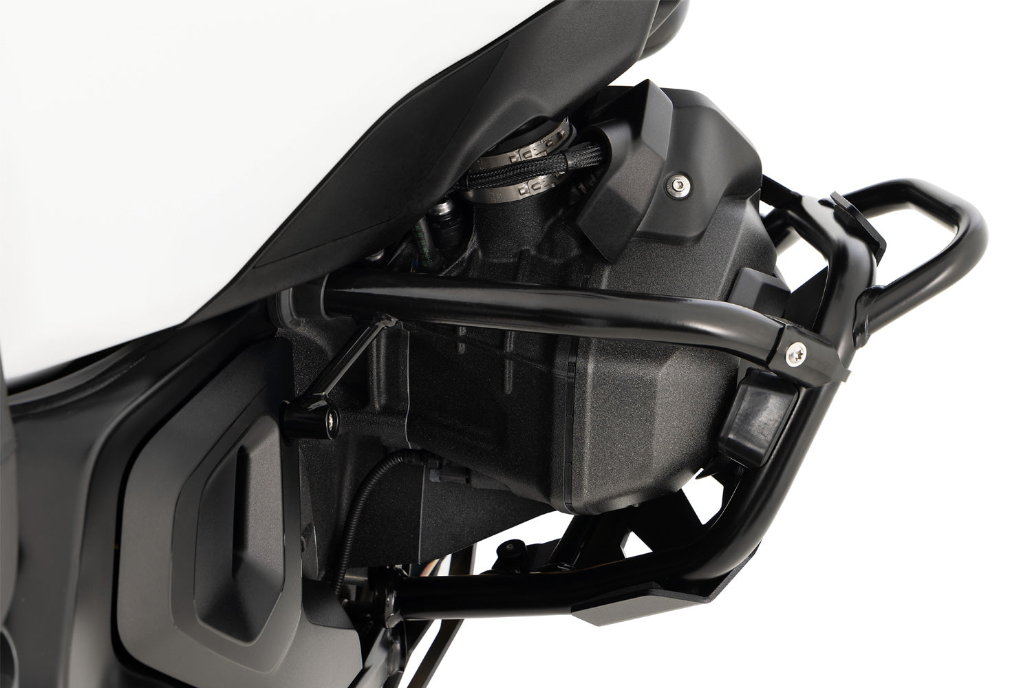 The Wunderlich reinforcement bars complement the original engine protection bar and provide solid extra protection for the sides of the BMW R 1300 GS and GS Adventure
