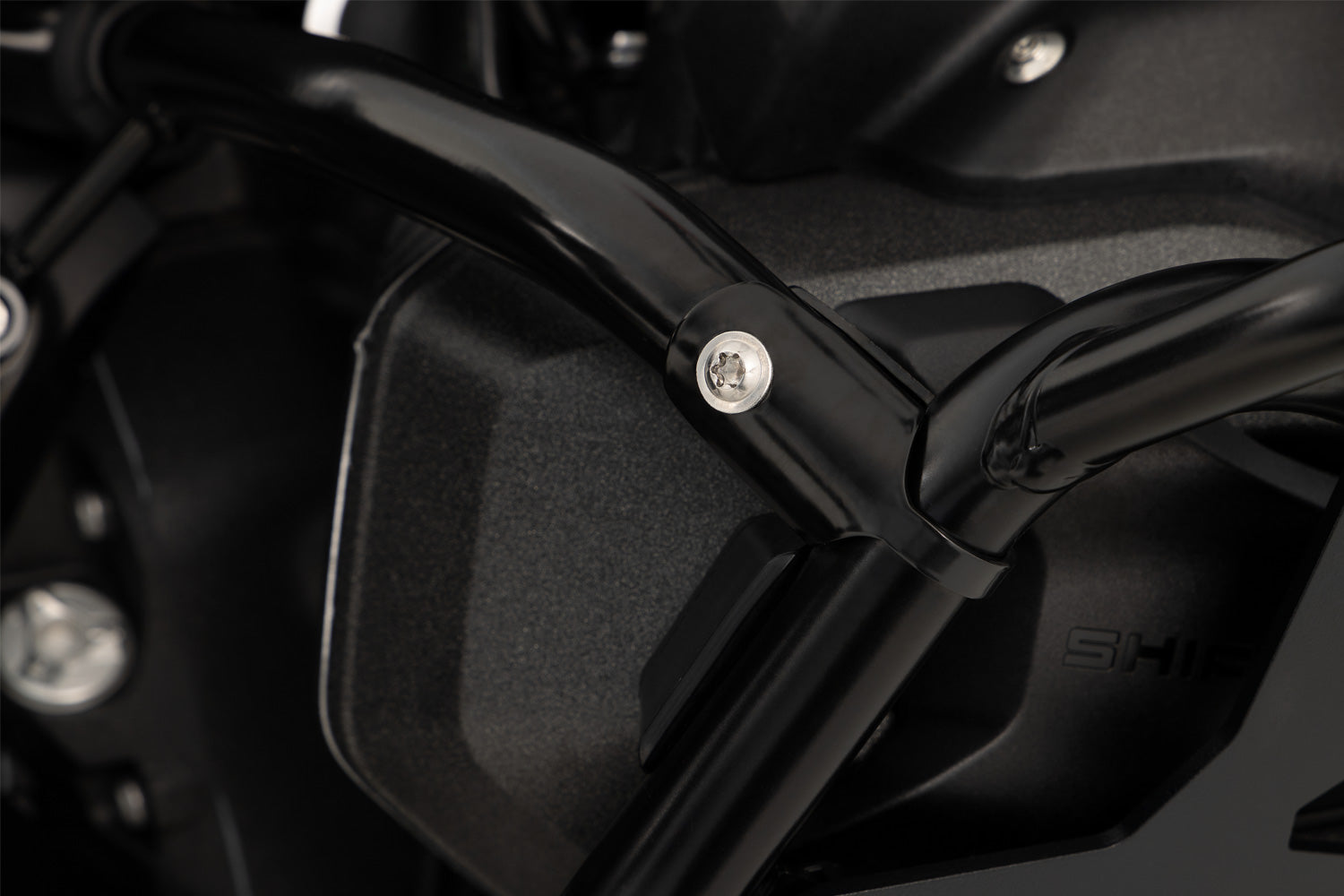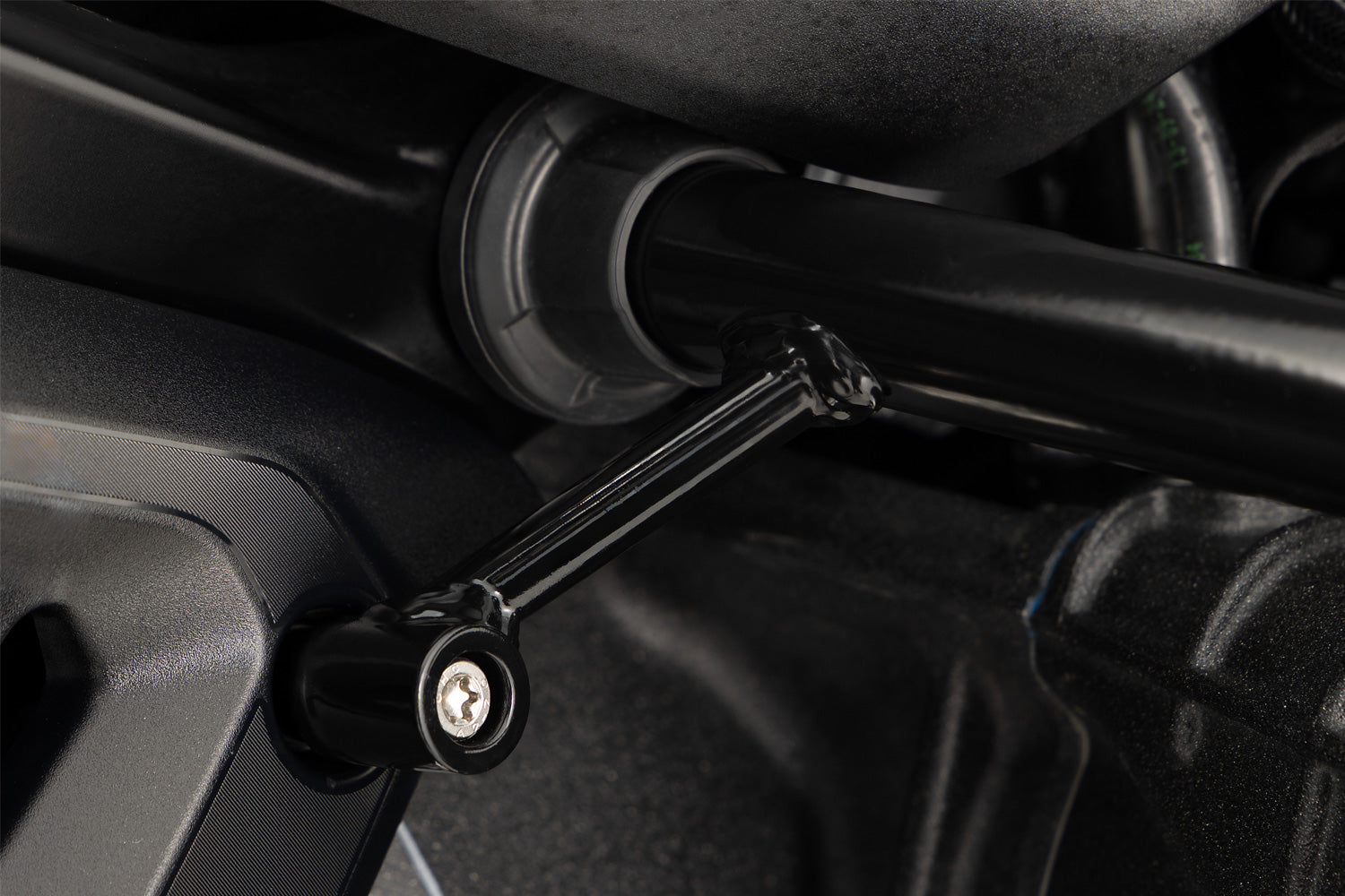 The surfaces are powder-coated in black, seamlessly integrating the reinforcement into the design of the standard engine protection bar.