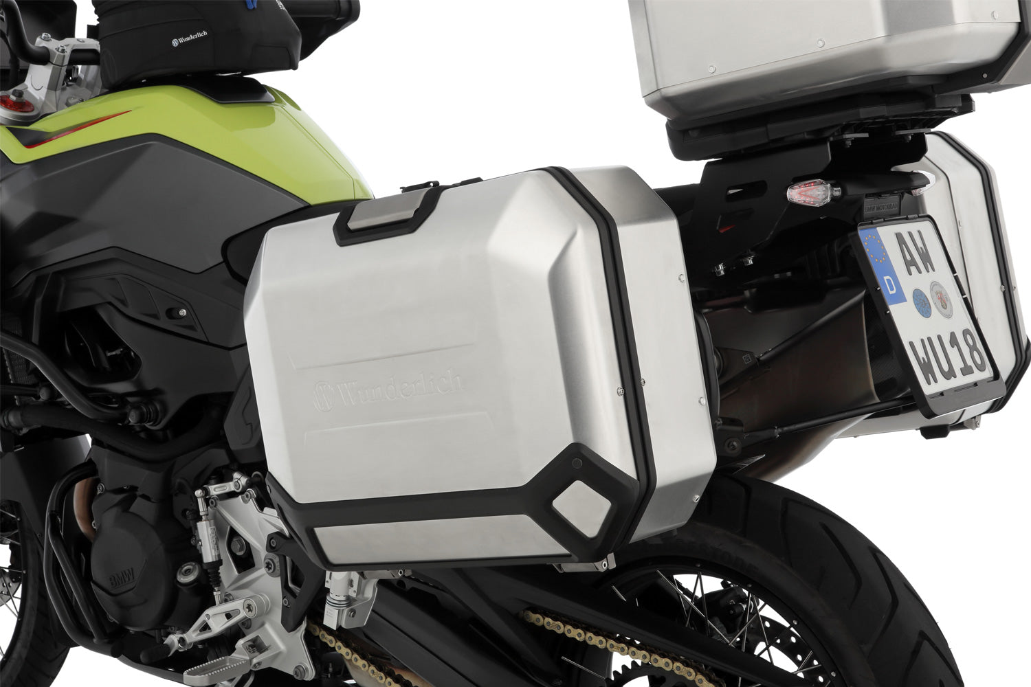 Once the lock is opened, the lid can be lifted and the X-CASE case can be conveniently loaded from the side. A custom-fit cap protects the lock from moisture and dirt. The lid features a high-quality embossed Wunderlich brand logo.