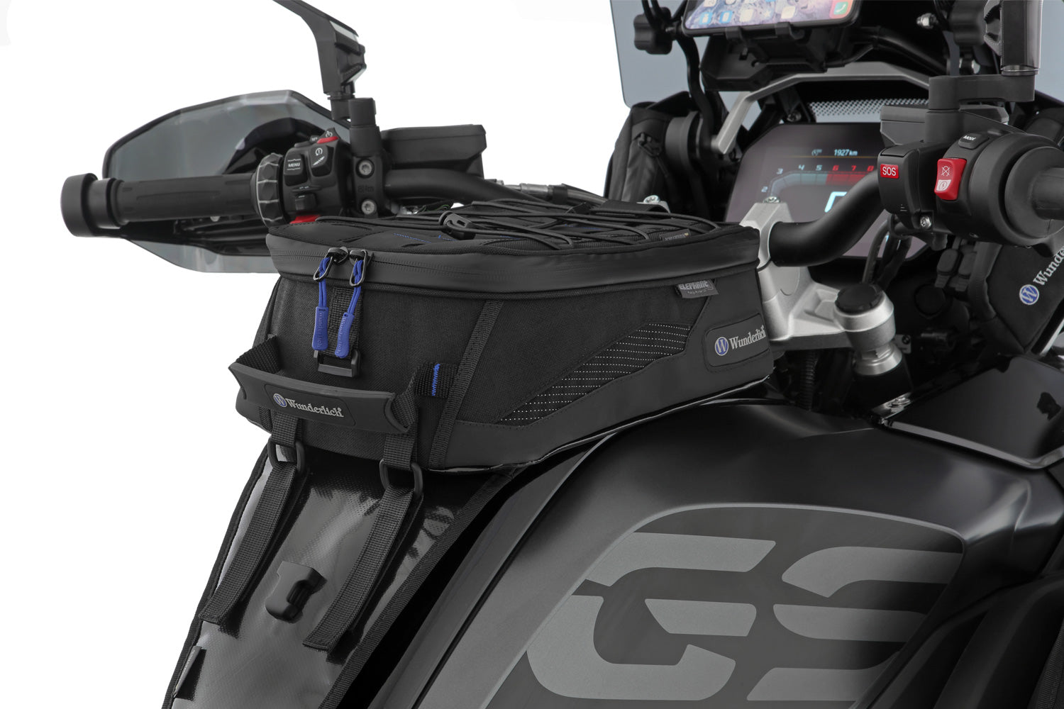 - The system holder (please order specific to the model) is secured to the vehicle in a few steps and securely attaches the tank bag via quick attachment and also makes it possibly to attach and detach it in an instant with gloves on