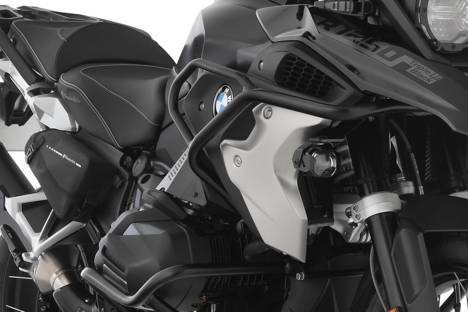 If you want to continue using the original BMW auxiliary lights, you will need one of our "Attachment kits org. additional headlights for Wunderlich tank guard"