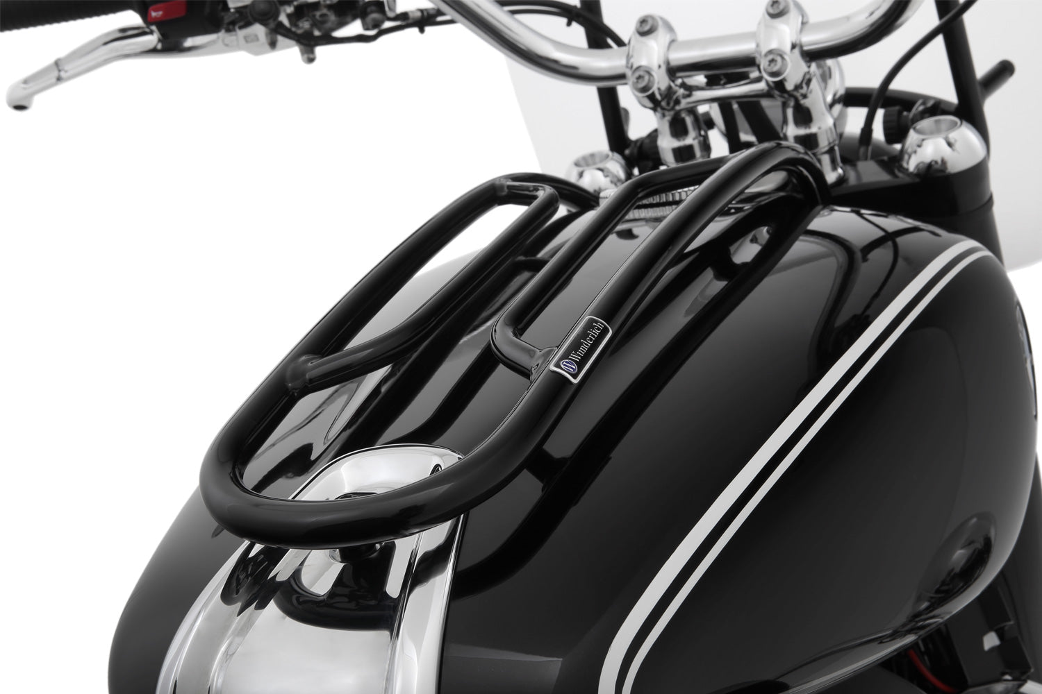 We recommend the polished black edition of the tank railing to all R 18 riders in combination with our black components and accessories - especially for conversions too!