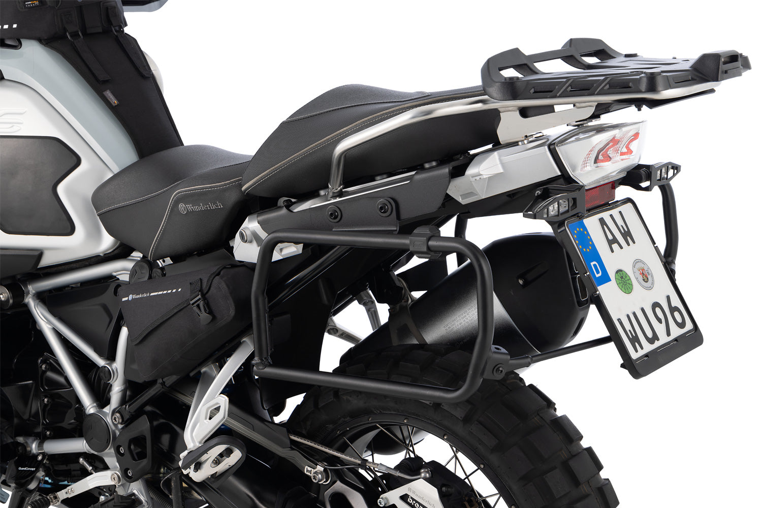 The X-RACK Topcase carrier is designed to accommodate the X-CASE X48 or X-BAG X40 topcases. The compact carrier blends discreetly into the bike's side line. The design of the carrier from high-quality steel focused on component rigidity and stability as well as optimised handling: The comfortable locking mechanism ensures reliable locking and unlocking, and secure hold and stability on the go – even when fully loaded.