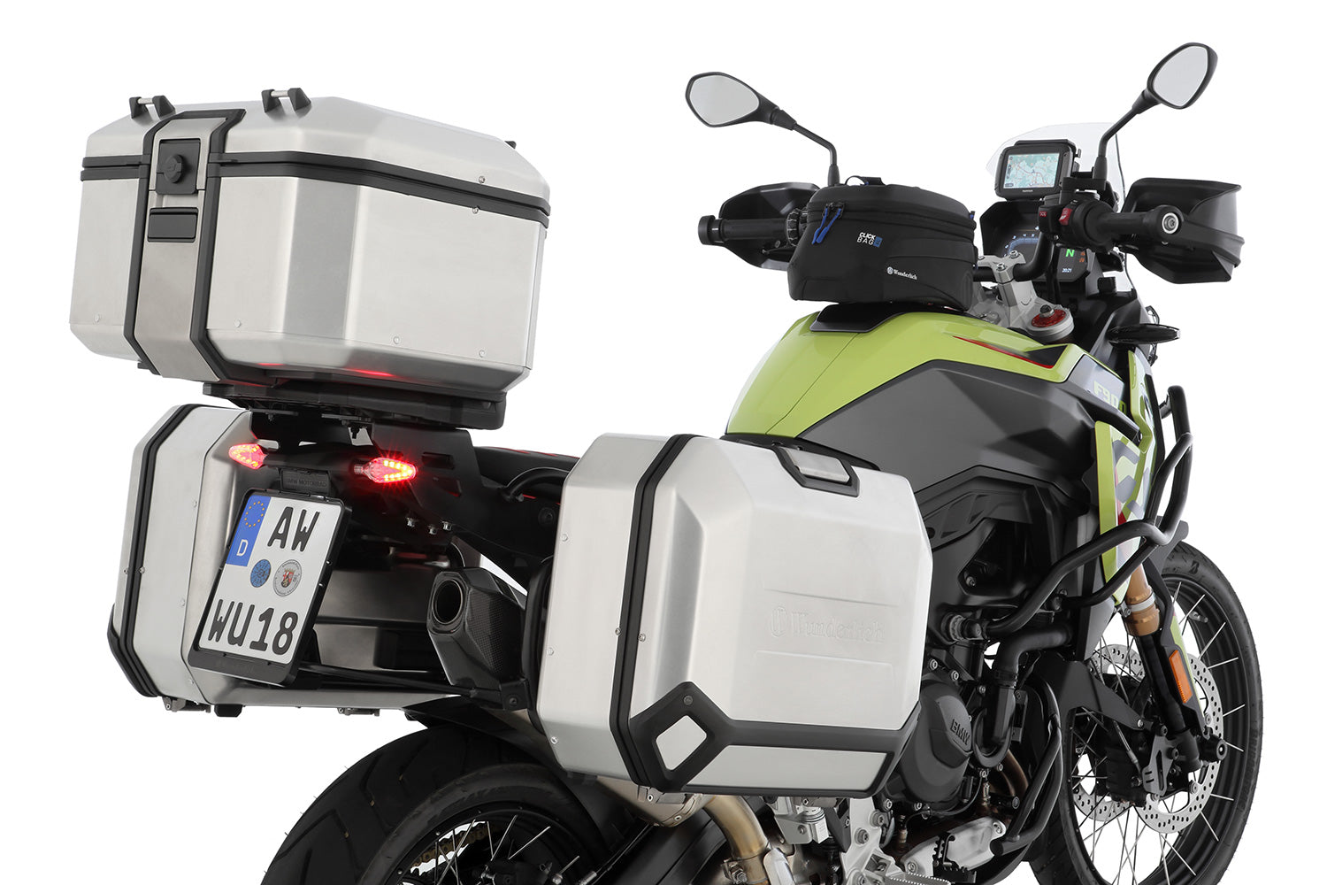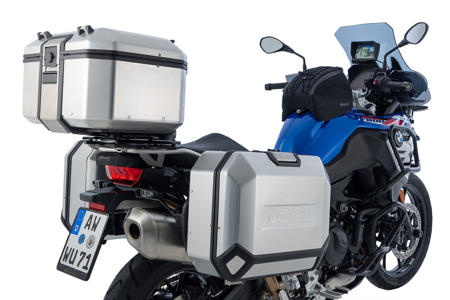 After opening the lock, the lid can be fully opened and the X-CASE topcase can be conveniently loaded from above. A custom-fit cap protects the lock from moisture and dirt. The lid is adorned with a high-quality embossed Wunderlich brand logo.