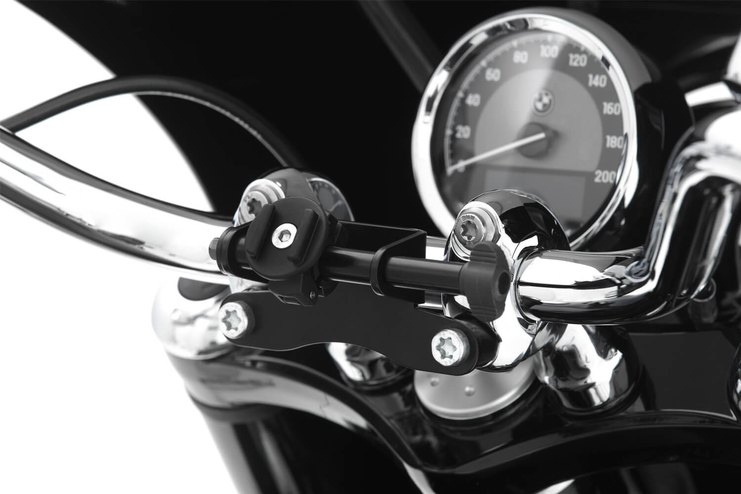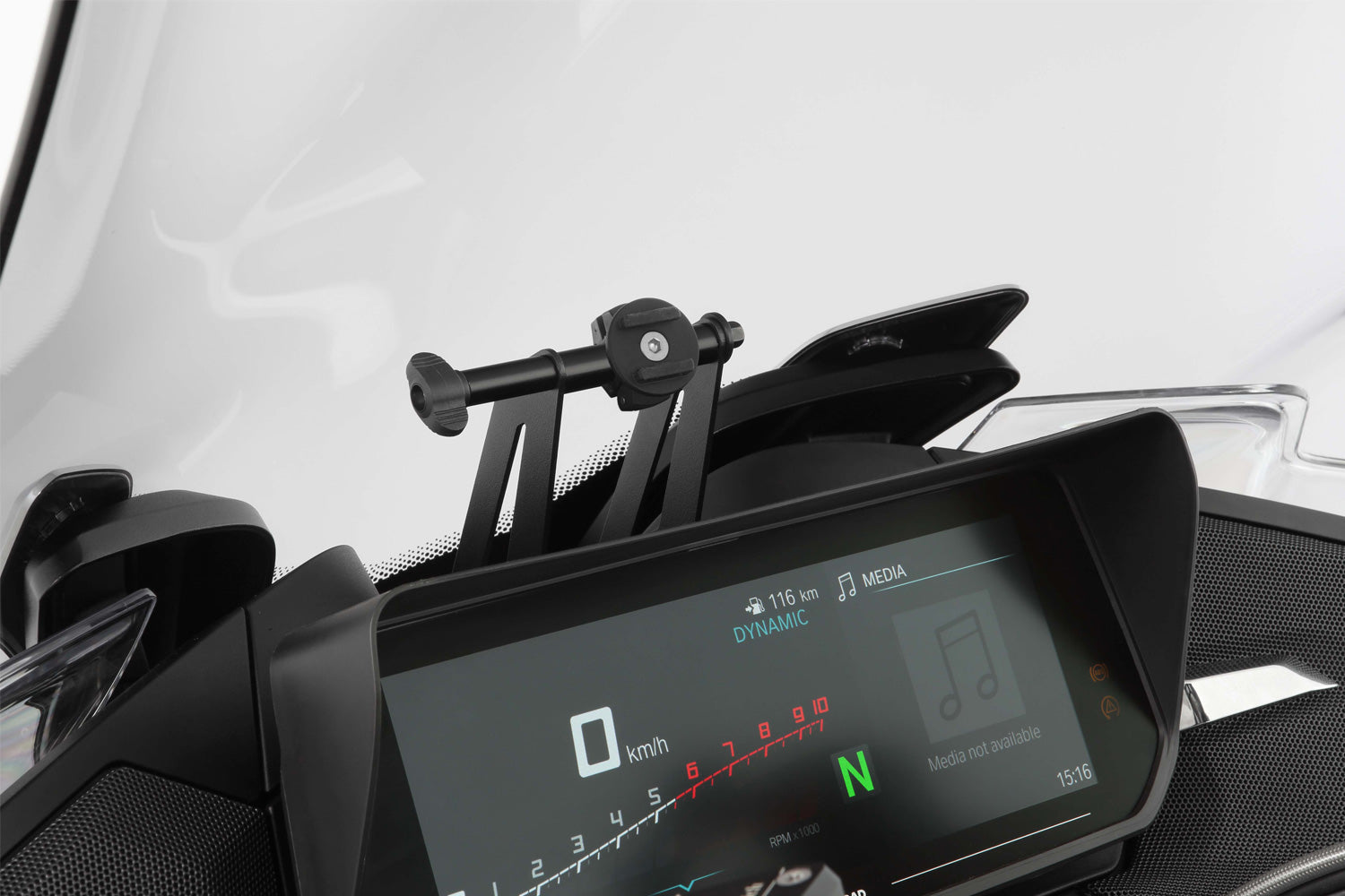 With the production of this universal device carrier, we have developed a base on which you can set our navigation mount universal (21098-000) or SP Connect Smartphone System Mirror Bundle (45151-0) as well as other smartphone and navigation attachment systems in a visible and ergonomic, easy to operate position above the TFT combi instrument. We have constructed the base holder with a cylindrical recess (length 59 mm, Ø 13 mm) so that it is compatible with practically all current attachment systems.