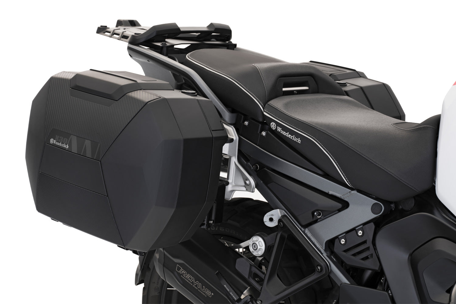 The carbon-look side panels, featuring the Wunderlich brand logo, are stylish and of premium quality, making them a real eye-catcher. The case surrounds are designed to be waterproof, ensuring that the lids seal watertight.