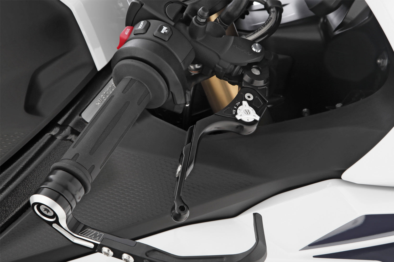 Another feature of the adjustability of the gripping distance that makes it possible to adjust the lever to the individual hand size/finger length. The gripping distance of the VarioLevers can also be adjusted while riding. An ergonomically optimal and handy dial lever on the top of the instrument panel lets you safely operate the turning mechanism to set the gripping distance even while wearing thick gloves. This is significantly important with a wandering pressure point (e.g. during sport or in demanding situations such as riding through passes.
